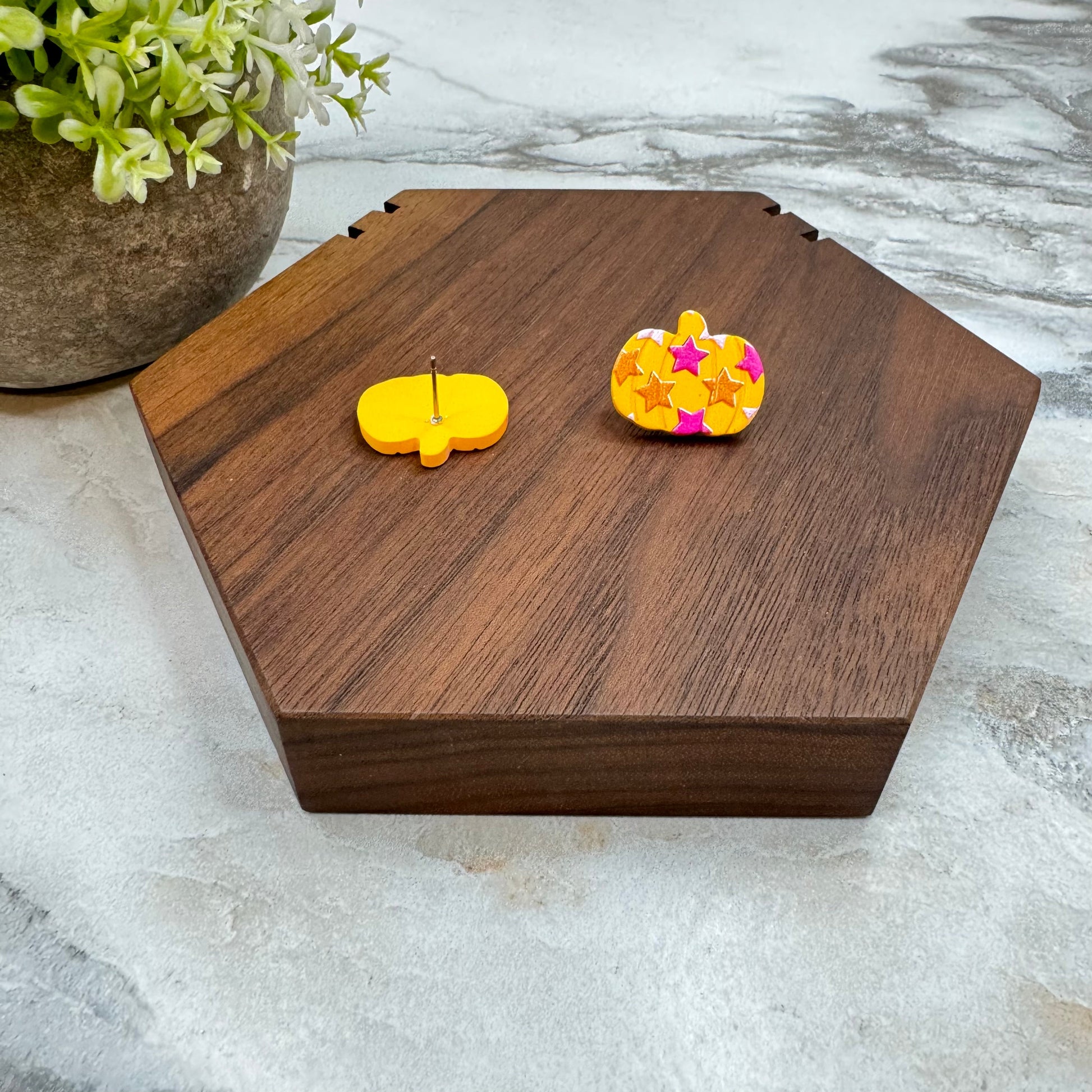 Acrylic Stud Earrings - Halloween - Orange Multi Star Pumpkin