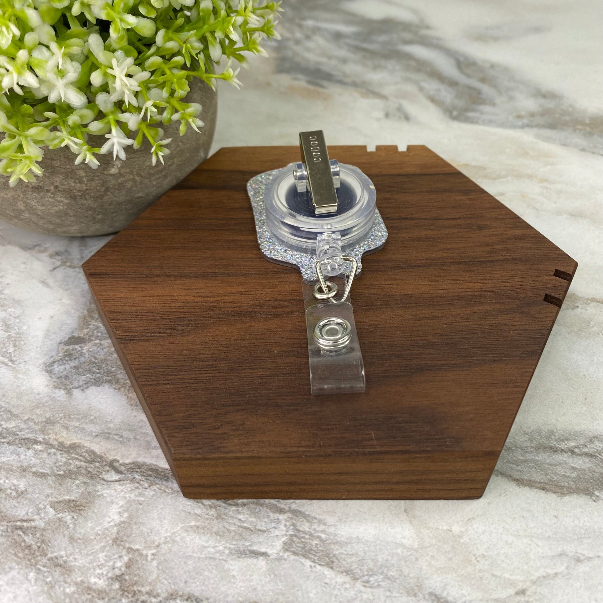 - Comes with a badge reel, clip on the back, with a loop for a ID holder.