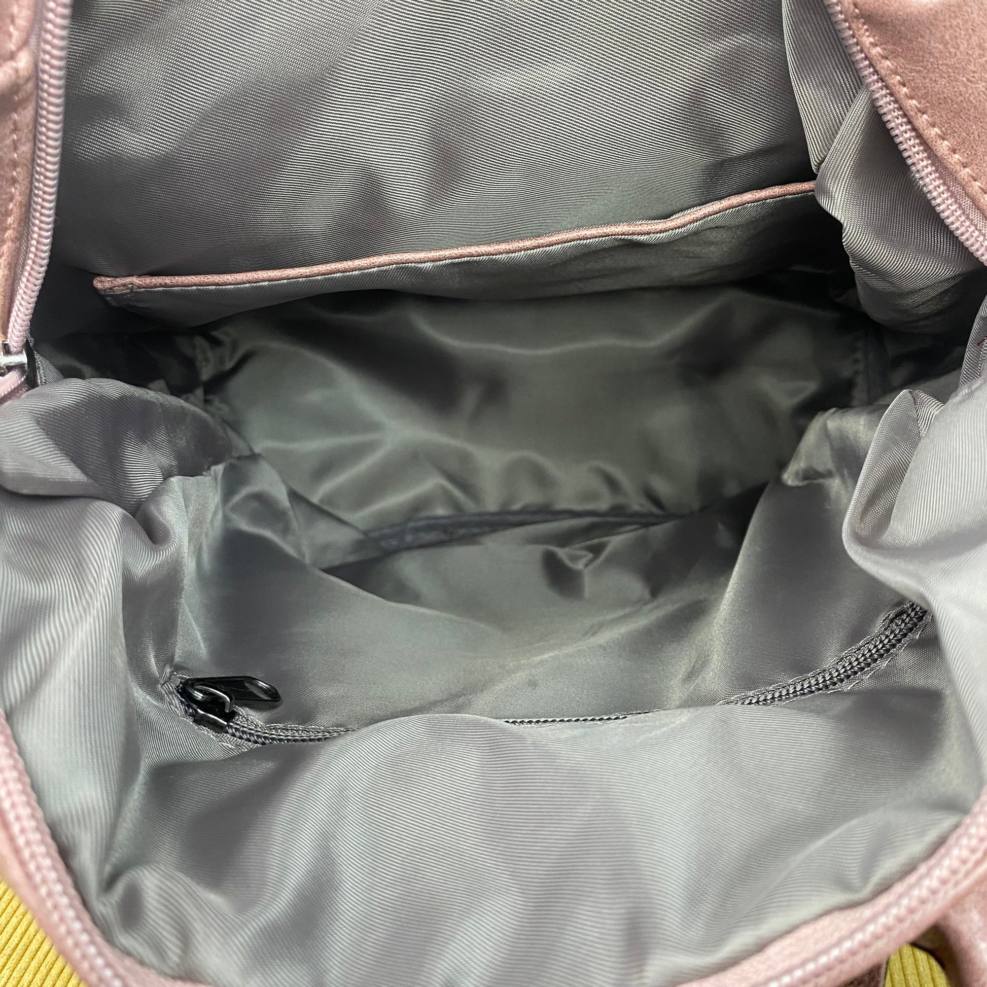 - One main compartment with duel zipper and lined fabric inner and one zip and one slip compartment inner