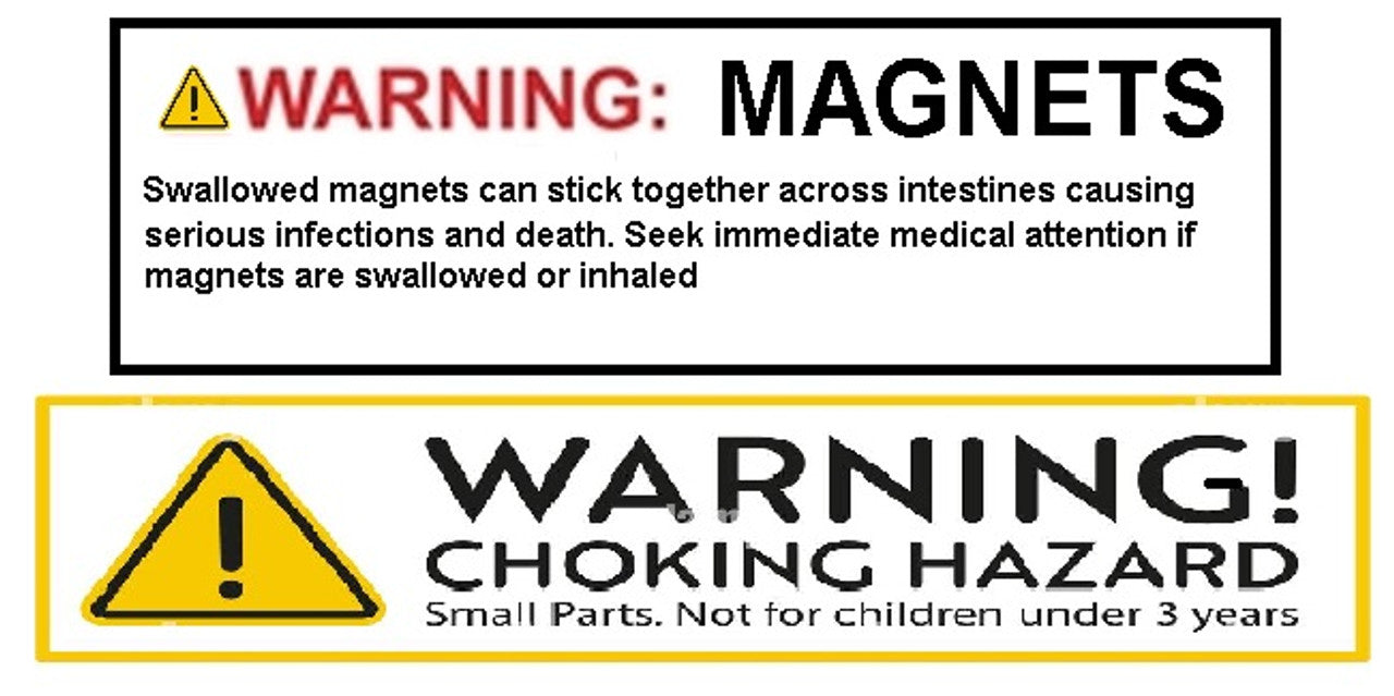 - Swallowed Magnets can stick across intestines causing serious injury and/or death. Seek immediate medical attention if magnets are swallowed or inhaled
