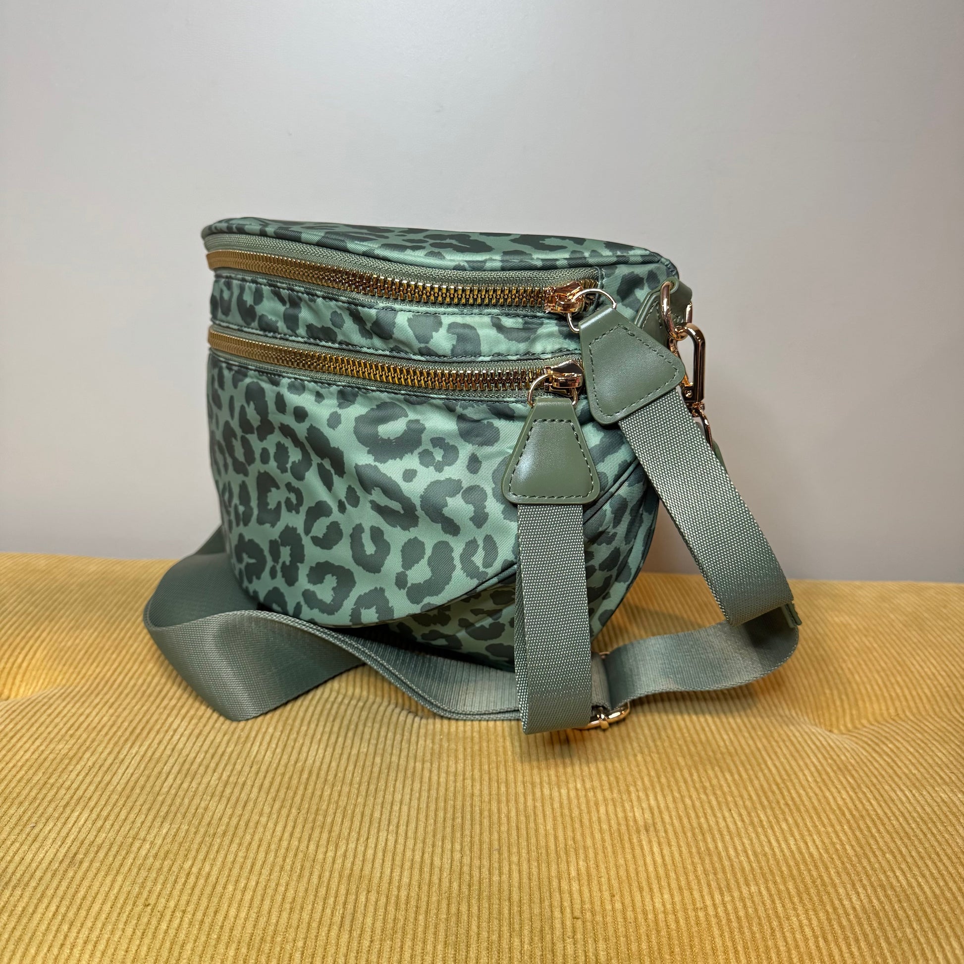 The Roni Nylon Crossbody - Animal Print Dark Green - PREORDER