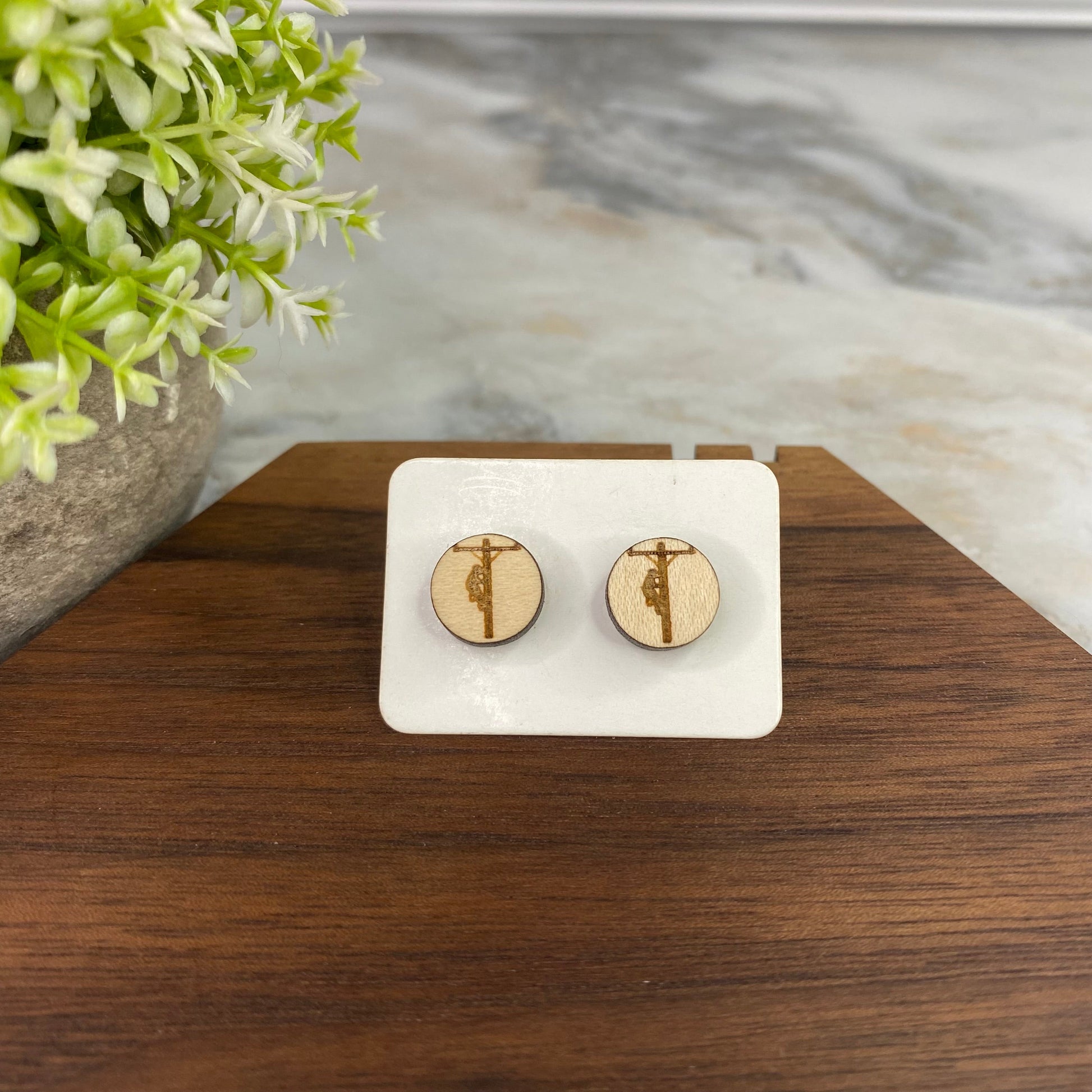 Wooden Stud Earrings - Lineman