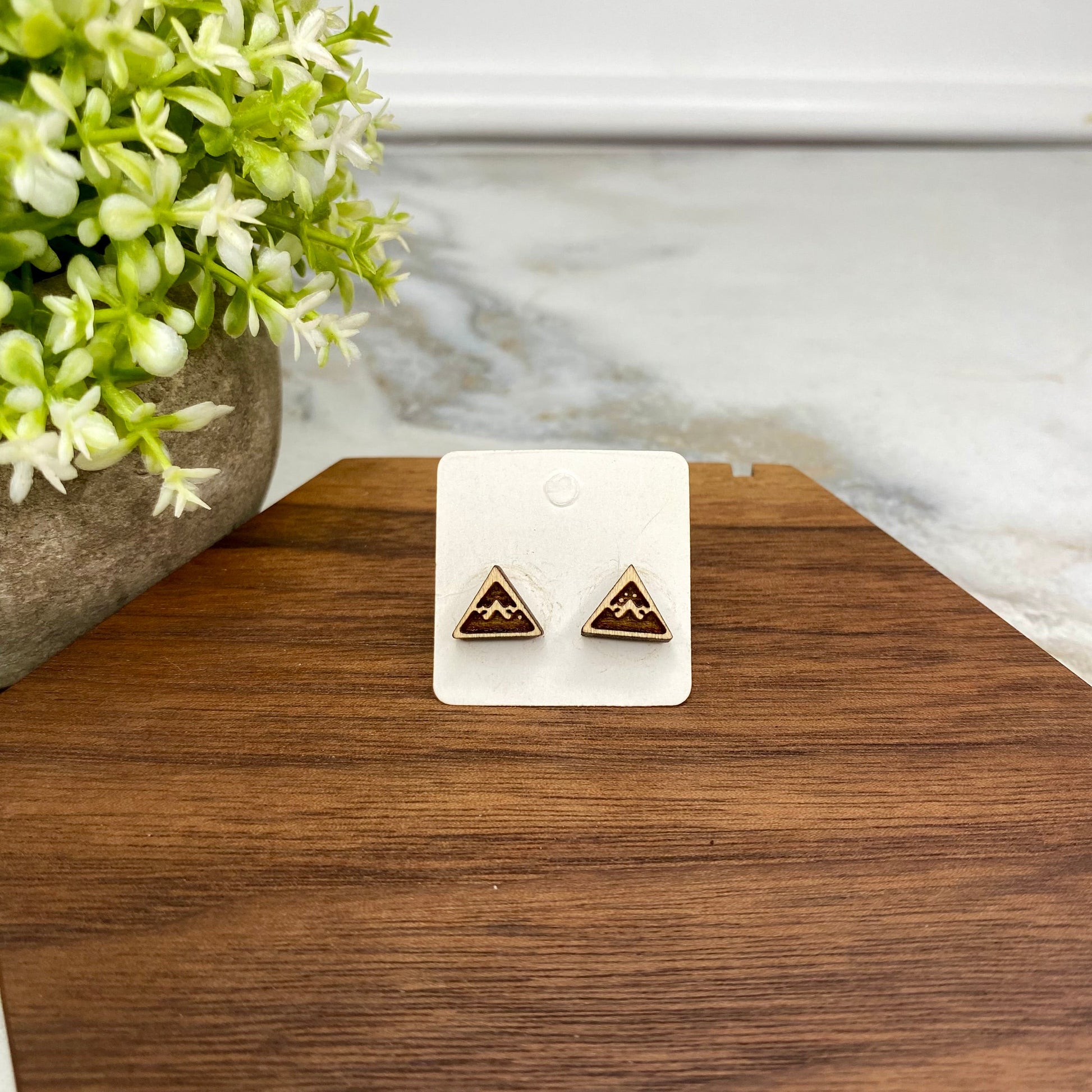 Wooden Stud Earrings - Mountain Peak