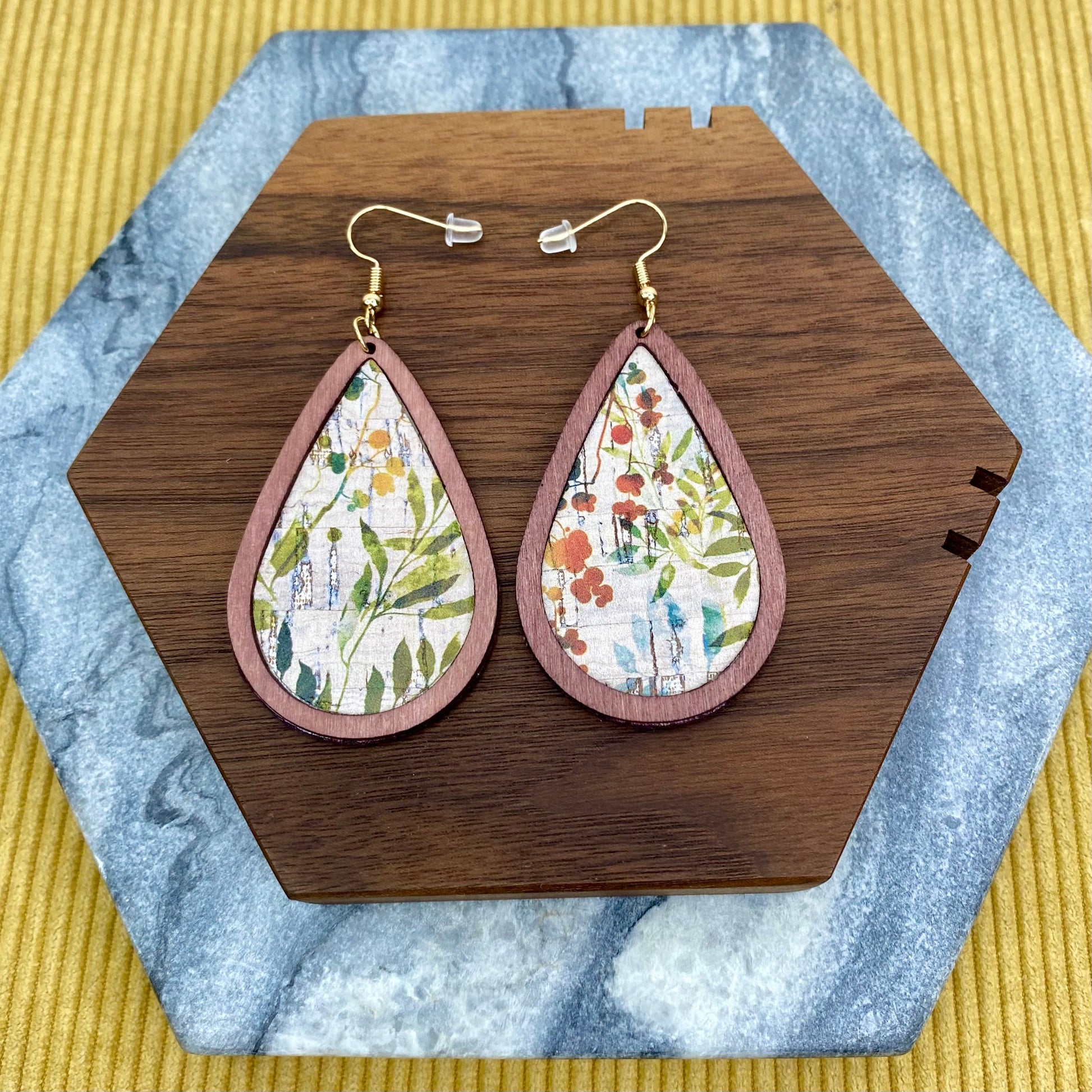 Wooden Teardrop Cutout Earrings - Vines